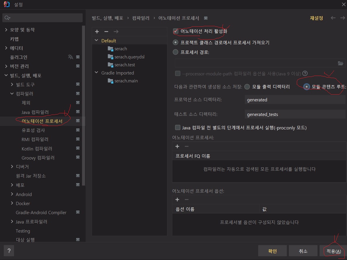 queryDsl 그래들 설정에 관한글을 이것저것 읽으며 설정 코드들을 여기저기서 가져온 것이 문제였는데..